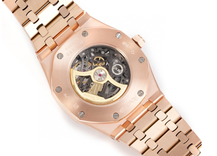 Exhibition Case Back: The transparent case back reveals the automatic movement in action, allowing a clear view of the intricate components in motion.