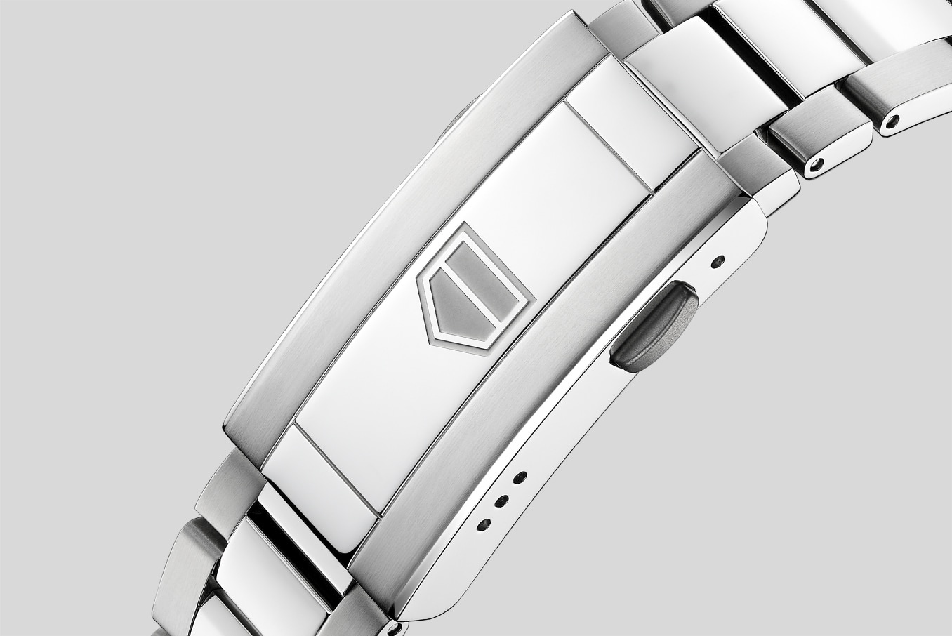 Geared to endure, the refined, tapered steel bracelet with an adjustable extension link strikes the perfect balance between function and performance.