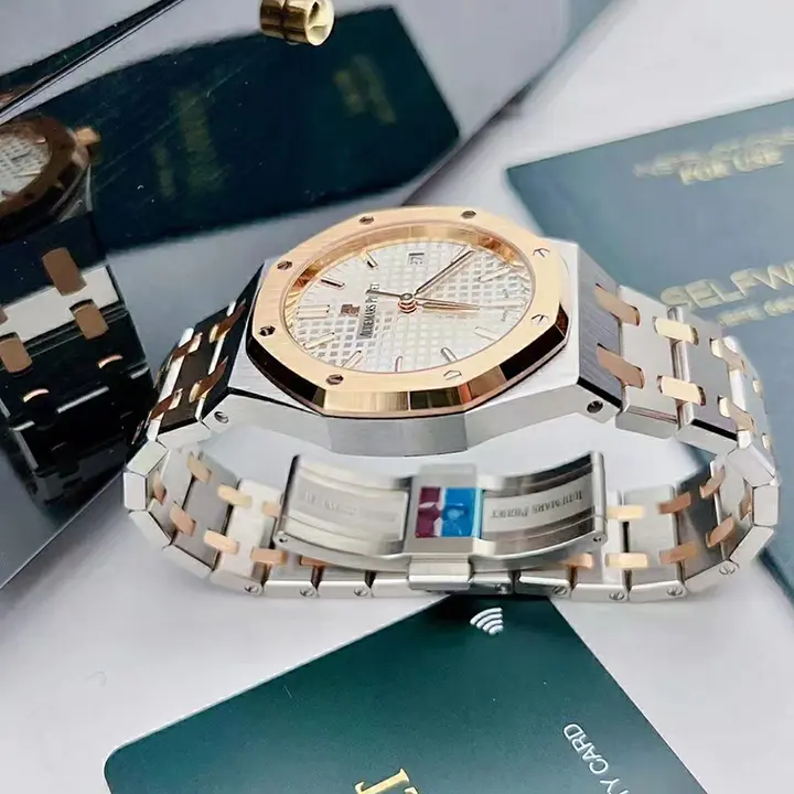 • Audemars Piguet Royal Oak Selfwinding Rose Gold and Steel White Dial 37mm Ladies Watch (Reference #15450SR.OO.1256SR.01)