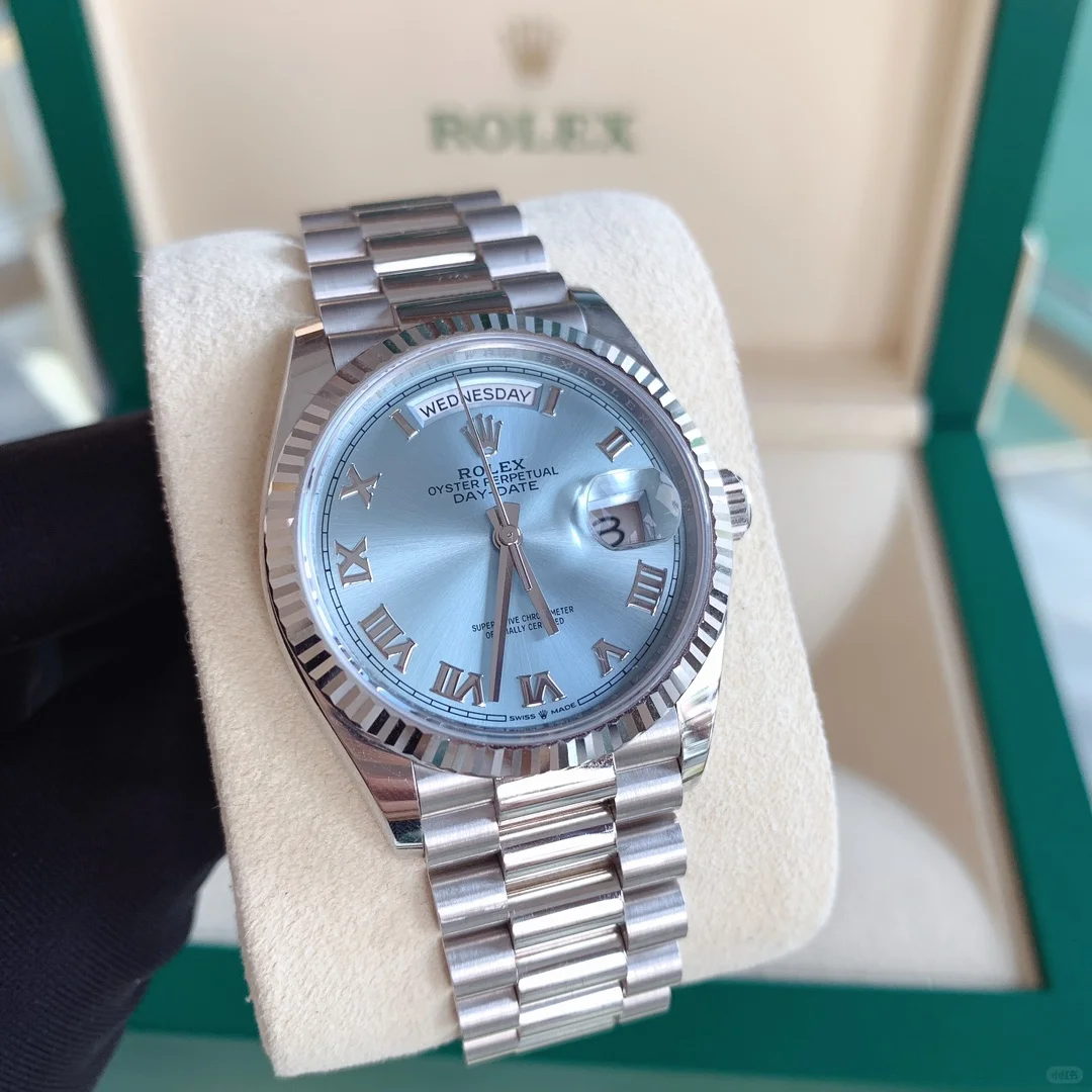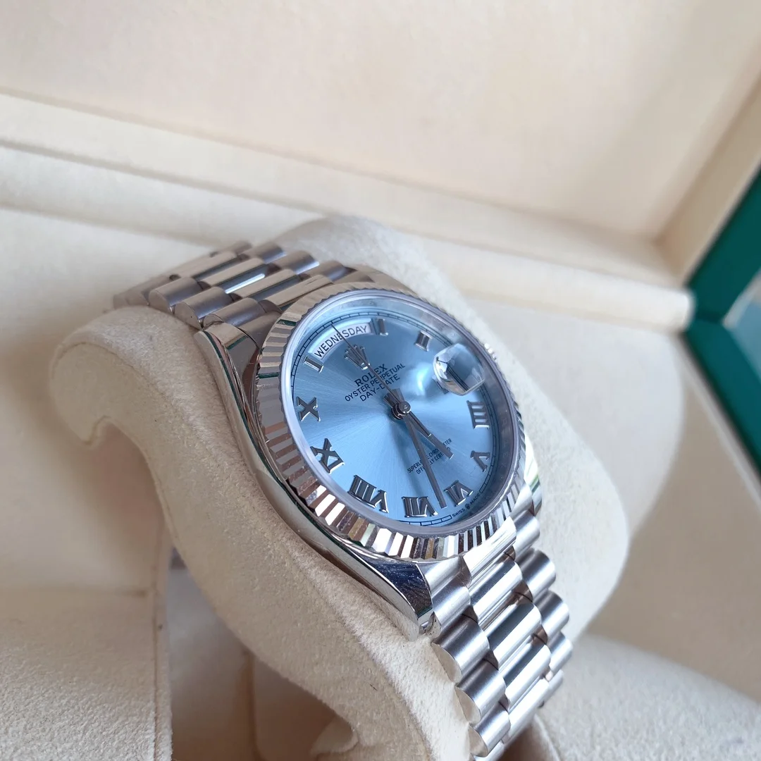 • Rolex 40mm White Gold Day Date 40 President Tiffany Ice Blue Diamonds 128236-0008