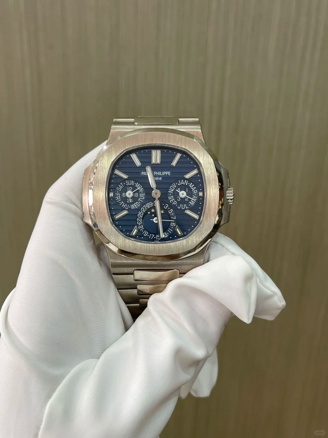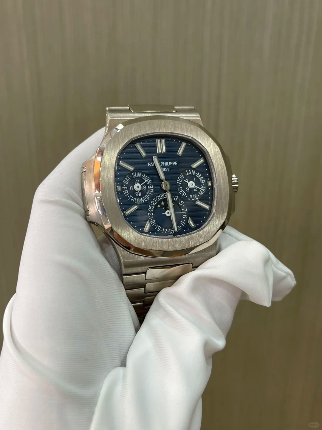 • Swiss movement 1:1 super clone-Patek Philippe Nautilus White Gold 5740-1G-001 with Blue Sunburst dial